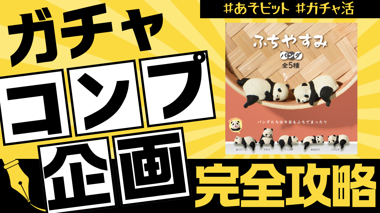 ガチャコンプリート挑戦脱力しているパンダがふちを使ってひとやすみをする姿がカプセルトイのフィギュア「ふちやすみパンダ」となって登場。