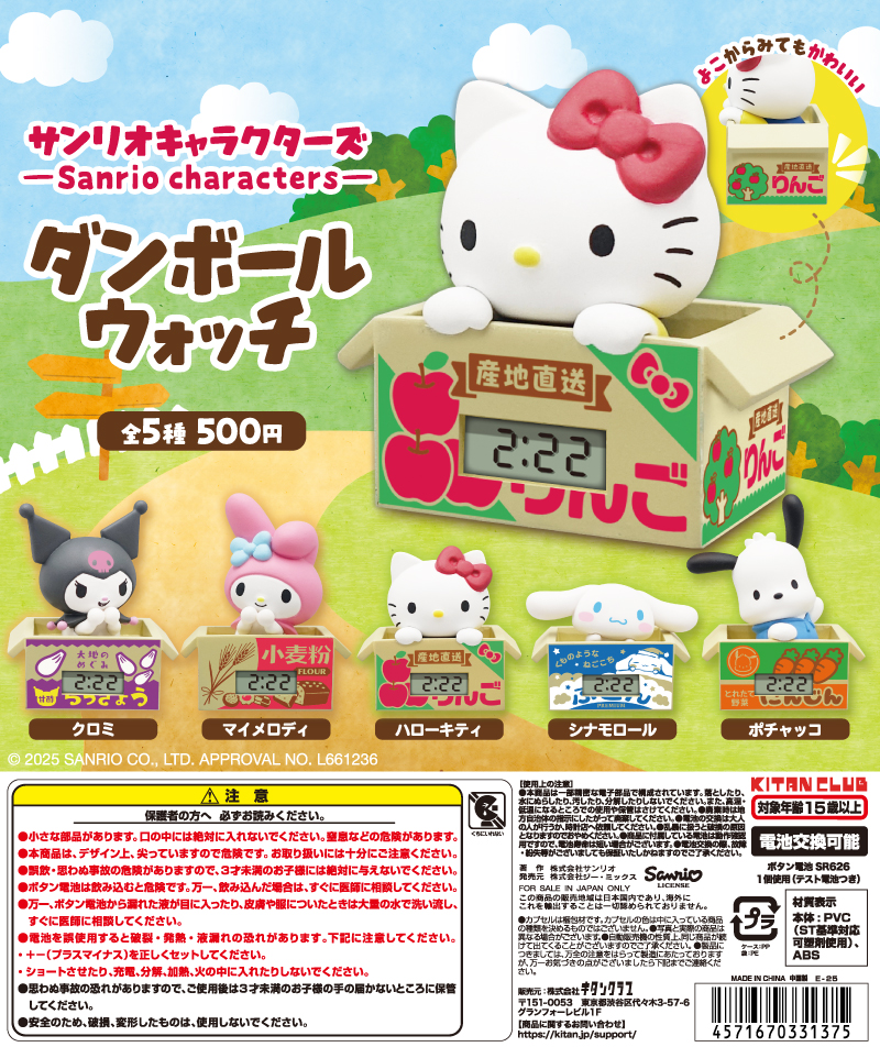 かわいすぎる実用派置き時計がガチャガチャの「サンリオキャラクターズ ダンボールウォッチ」となって仲間入りしました。