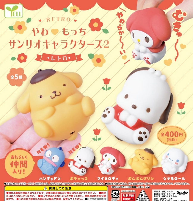 ガチャコンプリート挑戦ポチャッコやシナモロールなどのサンリオ人気キャラクターが、もちもちと柔らかな感触のフィギュア「やわもっち サンリオキャラクターズ2 レトロ」になって登場。