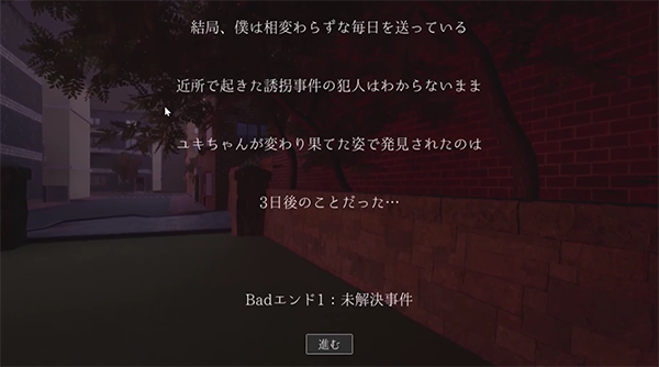 随所随所に出現する選択肢を選びながら進めていくと、すんなりとおじさんが犯人であることがわかる。