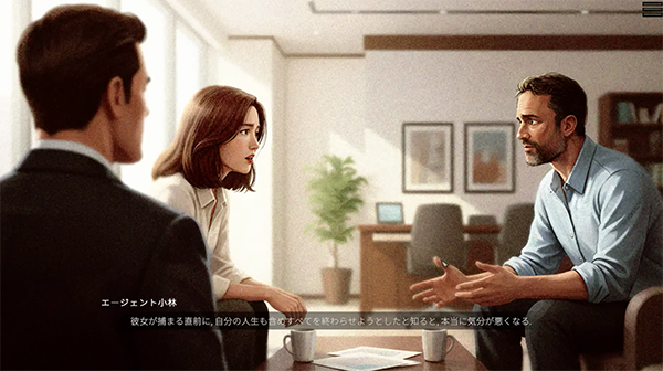 全ての住所がわかって、必死に現実へと戻るエージェント小林。