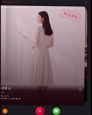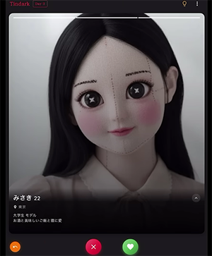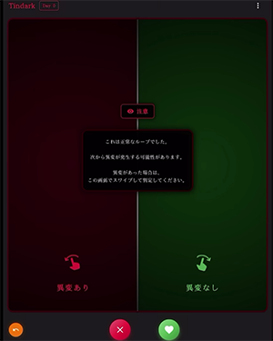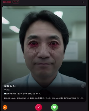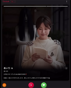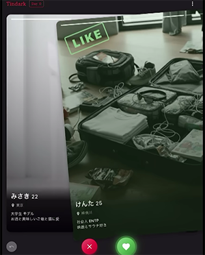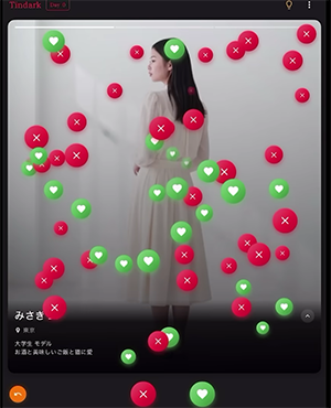 プレイヤーは仮想のマッチングアプリ「tindark」を操作しながら、