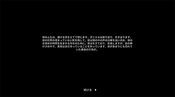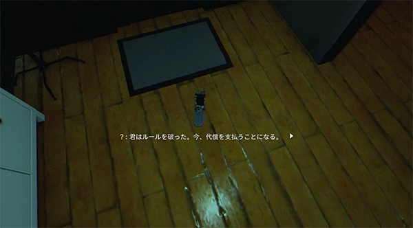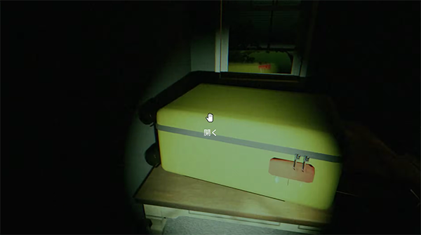 スーツケースの3つの鍵を挿して開けようとしていたシーンで、部屋に戻らずに何度もスーツケースを調べることで、エンディングへと到達する。