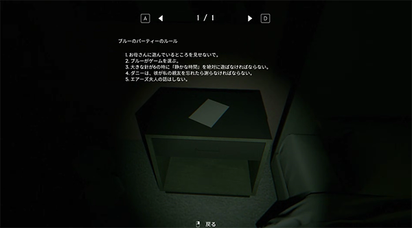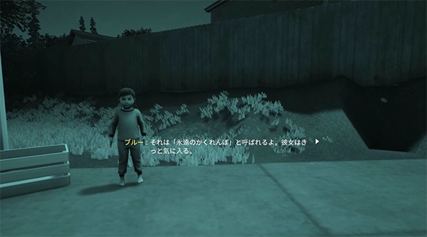 主人公の過去に、隣家の少年の家で遊んだ微かな記憶と共に、その家へ調査へと向かう。