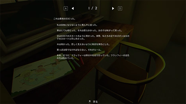 その家をオーソドックスなウォーキングシミュレータ型のアドベンチャーとして探索を行っていく。