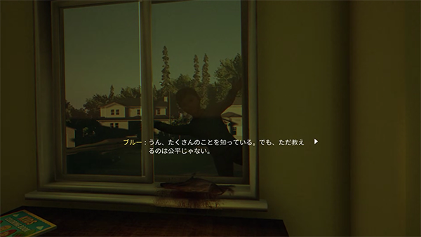 ラストのシーンでブルーに話しかけずに外に出て、スーツケースも無視をして家の中に入る。