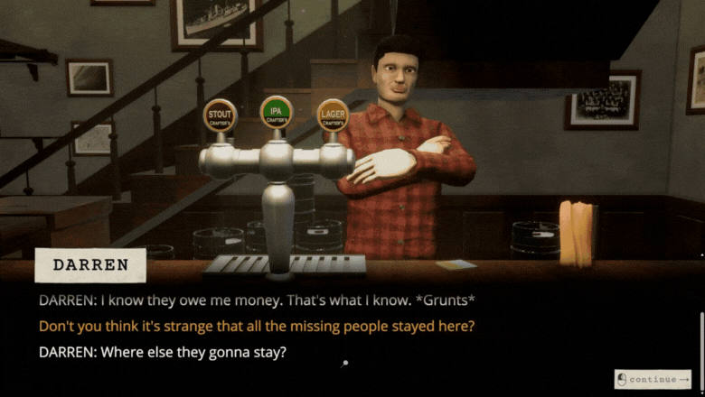 Golden Valleyの住民たちと会話を交わすことで、情報を得たり嘘を見抜いたりします。