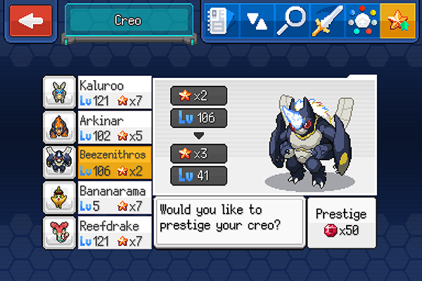 「EvoCreo 2」では、多くのCreoが複数の進化分岐を持ちます。