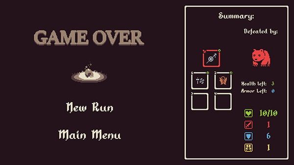 ゲームオーバーになると取得アーティファクトが”魂結晶”に変換され、拠点で恒久アップグレードを購入できる。