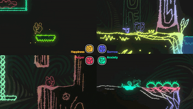 これらの感情を状況に応じて使い分けることで、単なるジャンプや移動だけでは突破できないステージを攻略するパズルアクションが展開されます。