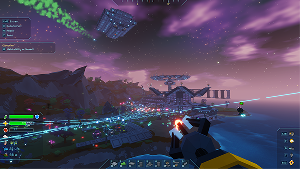 「生き延びなければならない」要素も備わっており、基地を守るための防御、飛行システム、修理・維持といった作業も発生。