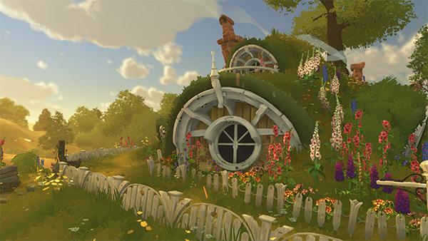 ゲーム序盤から登場するプレイヤーの家は、まさに映画でおなじみのホビット・ホール(丸い扉の土の家)。