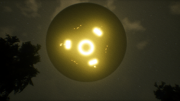 夜の闇の中から不意に差し込む、青白いUFOのサーチライト。