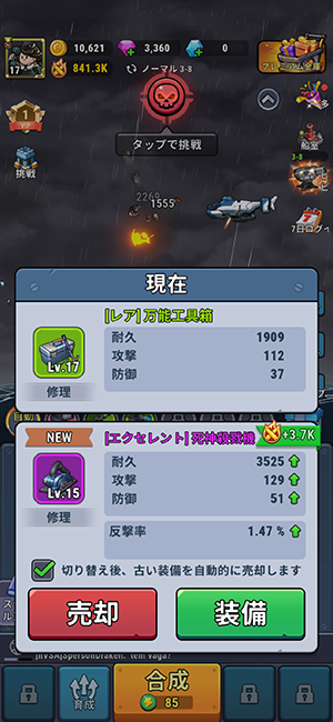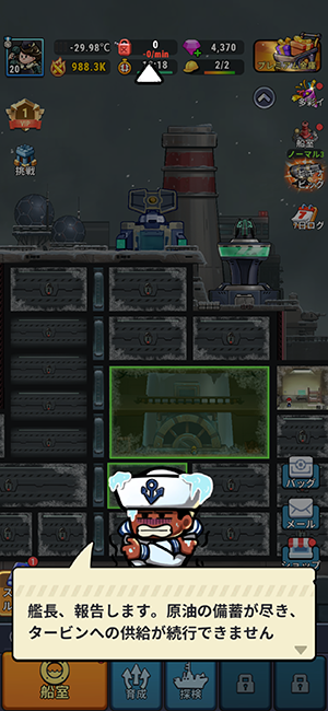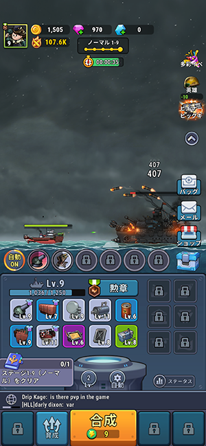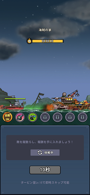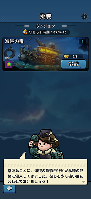 ステージ攻略は装備や船室を充実させたり、様々な要素で強くして攻略していきます。