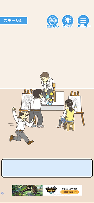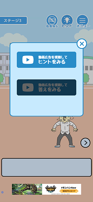 広告はステージクリア時や失敗時、ヒントや答えを見る時に出現する。