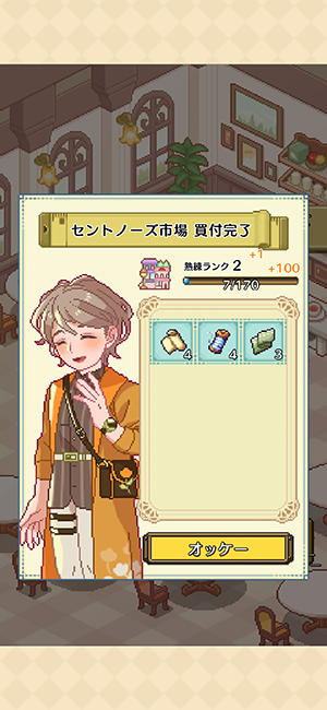 特定の販売目標を達成することで「お店の評判」が上がり、新たなストーリーの扉が開かれます。