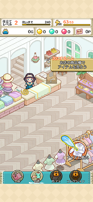 素材を集めて服や小物を制作する放置型経営シミュレーション